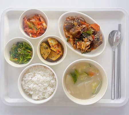 육개장 청파래오징어까스 새송이버섯볶음 무말랭이무침 김치