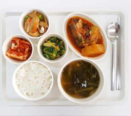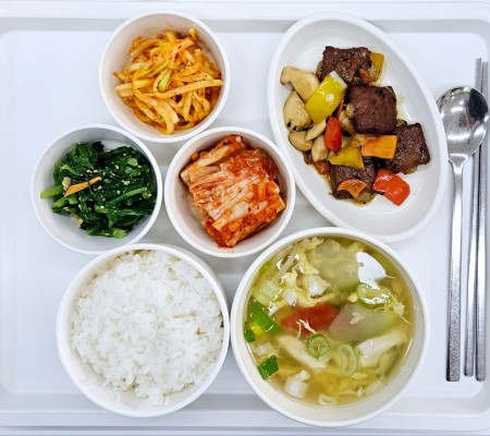 시금치된장국 간장불고기 새송이볶음 오이지무침 김치