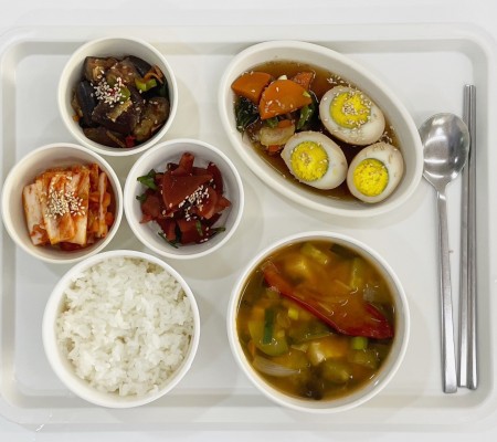 김치찌개 계란장조림 쥬키니호박볶음 청경채나물 깍두기