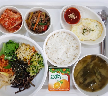 나물비빔밥 미역국 후라이*약고추장 떡갈비조림 요구르트 김치
