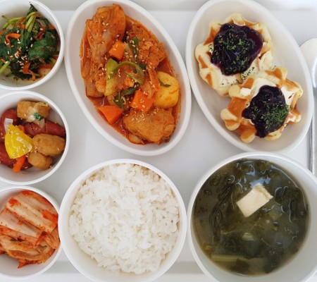 소고기무국 가자미구이 베이컨팽이볶음 돌자반 김치