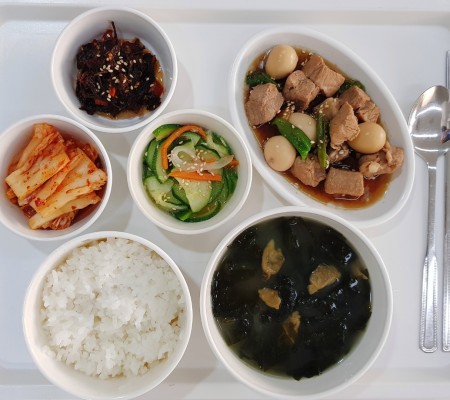 미역국 해물콩나물찜 우엉조림 마카로니콘샐러드 김치