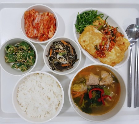 맑은육개장 가자미레몬구이 고사리볶음 열무쌈장무침 김치