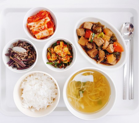 맑은미역국 제육김치지짐 어묵볶음 상추겉절이 백김치