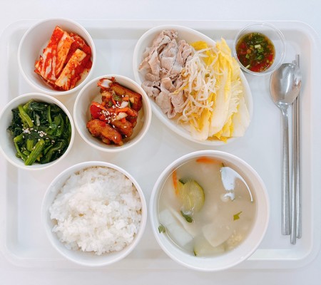 김칫국 제육볶음 떡볶이 고사리나물 김치