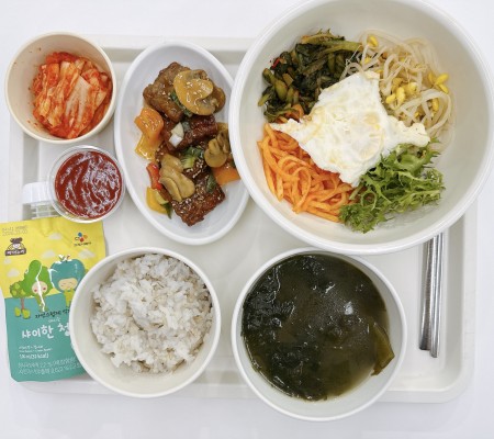 열무보리비빔밥 미역국 후라이/고추장 산적조림 포기김치