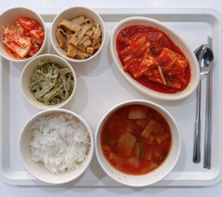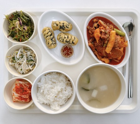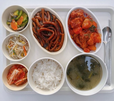 시금치된장국 닭볶음탕 짜장떡볶이 호박느타리볶음 숙주나물 포기김치