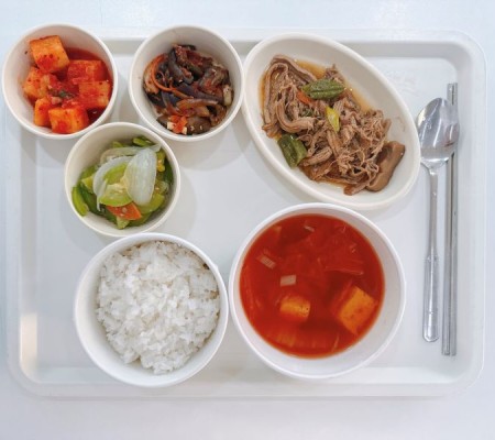 콩나물국 소불고기 건새우무조림 청경채무침 포기김치