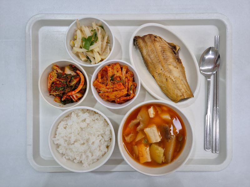 된장찌개 임연수구이 어묵볶음 도라지나물 봄동겉절이
