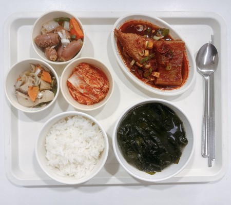 미역국 가자미조림 비엔나야채볶음 새송이통들깨무침 포기김치