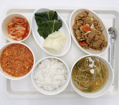 콩나물국 간장불고기 우렁강된장 모듬숙쌈 포기김치