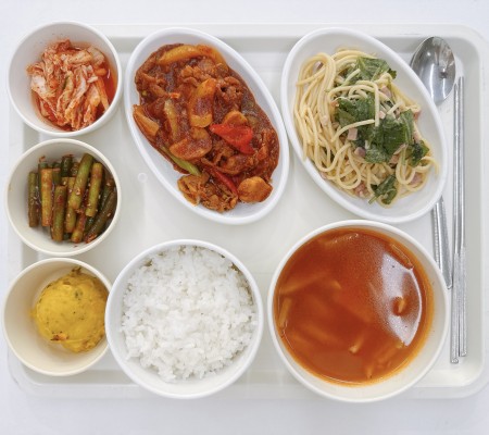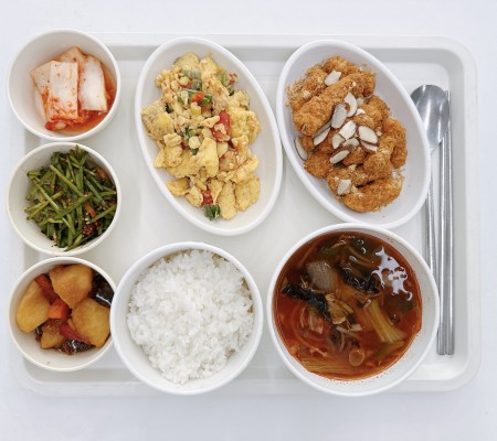 짬뽕국 인절미탕수육 토마토달걀볶음 감자조림 부추겉절이 포기김치