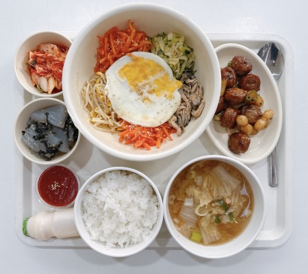 비빔밥 배춧국 계란후라이/고추장 미트볼떡조림 올방개묵무침 포기김치