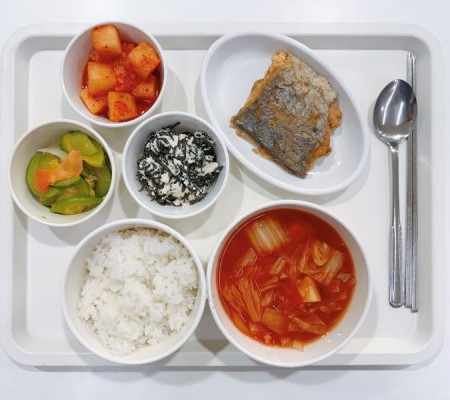 김칫국 갈치구이 애호박볶음 톳두부무침 깍두기