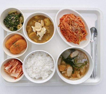어묵국 일식카레 쫄면 감자고로케 얼갈이무침 포기김치