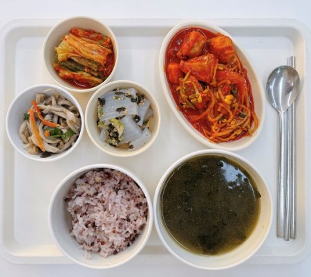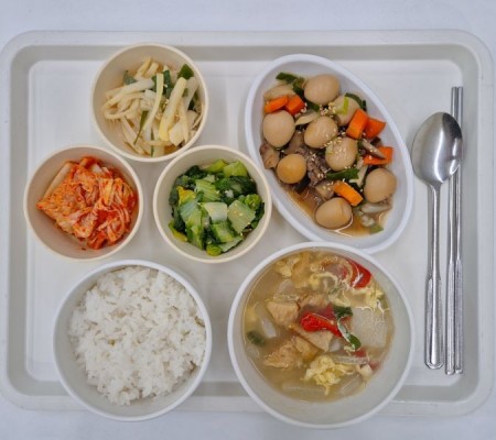 미역국 순살아구찜 느타리볶음 올방개묵무침 포기김치