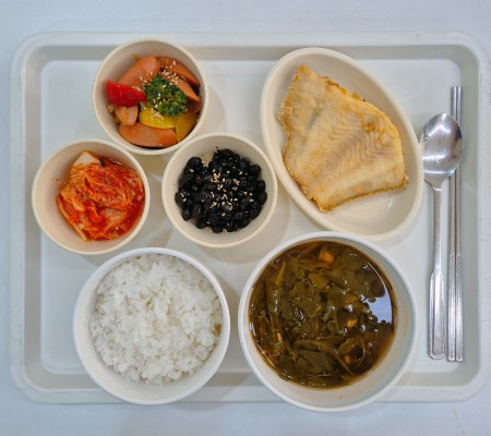 냉이국 가자미구이 브로콜리햄볶음 콩자반 김치