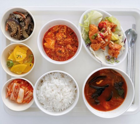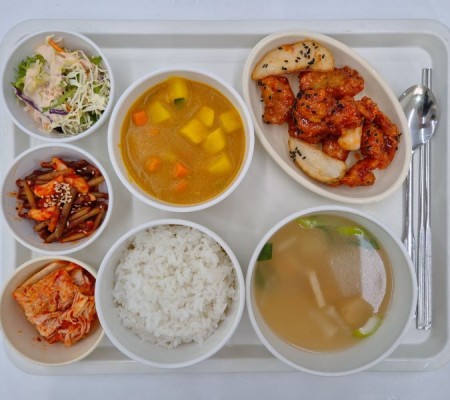 어묵국 카레 순살닭강정 양배추샐러드 마늘쫑지무침 포기김치