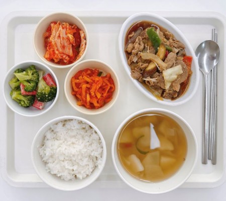 감자양파국 간장불고기 브로콜리볶음 무짠지채무침 포기김치