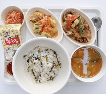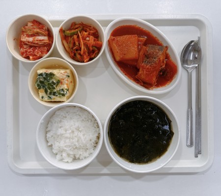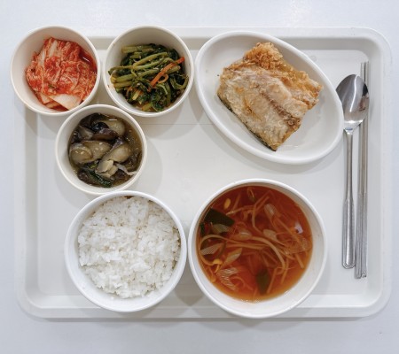 얼큰콩나물국 삼치구이 가지볶음 열무쌈장무침 포기김치