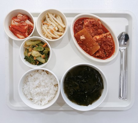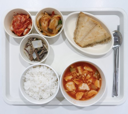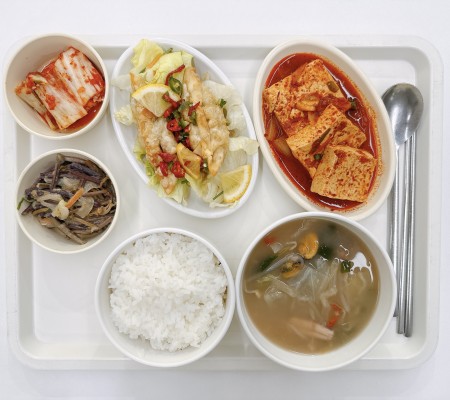 순두부찌개 가자미구이 새송이짬뽕볶음 고사리볶음 포기김치