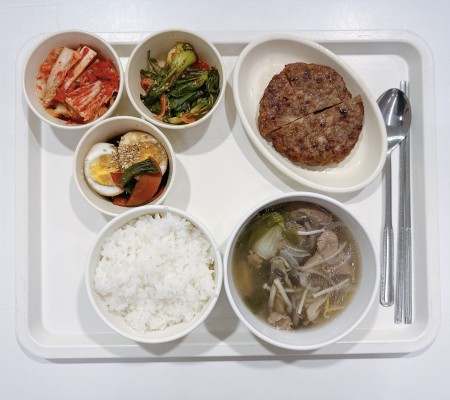 샤브샤브국 떡갈비 계란장조림 청경채겉절이 포기김치