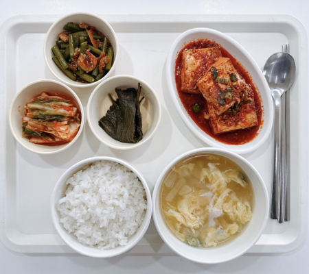 미역국 민찌두부조림 우엉채조림 시금치나물 포기김치