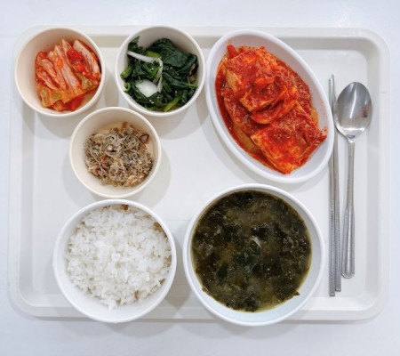 들깨미역국 참치두부조림 잔멸치볶음 시금치무침 포기김치