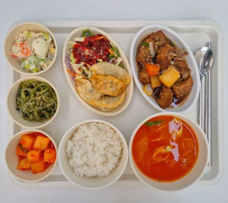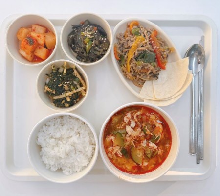 순두부찌개 고추잡채/또띠아 가지나물 물파래무침 깍두기
