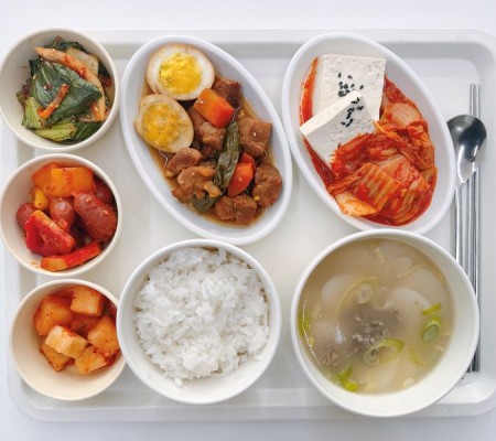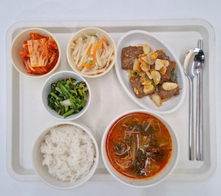 육개장 마늘떡갈비 감자채볶음 열무무침 포기김치