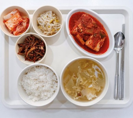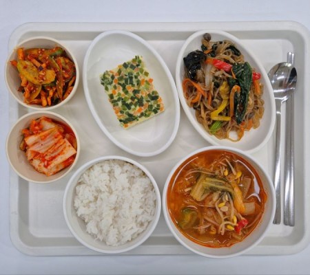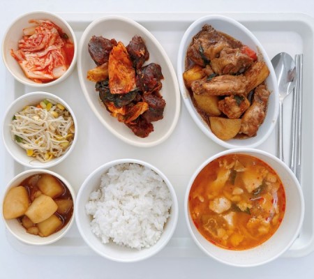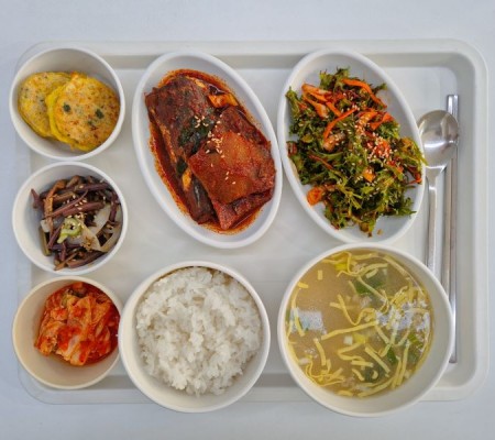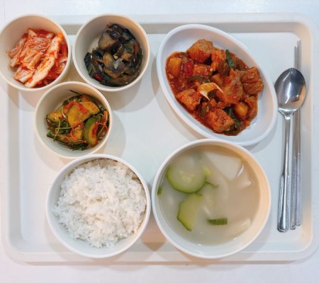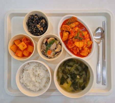 시금치된장국 김치닭조림 새송이볶음 콩자반 깍두기
