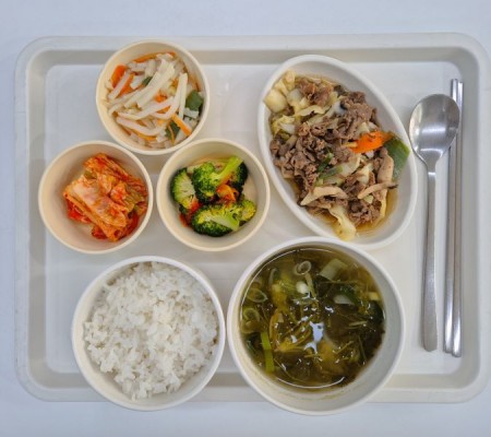 냉이국 소불고기 감자채볶음 브로콜리/초장 포기김치
