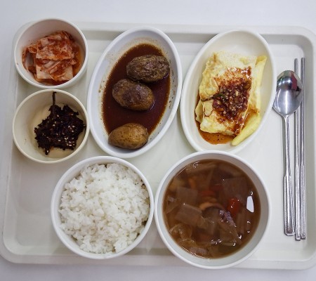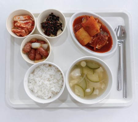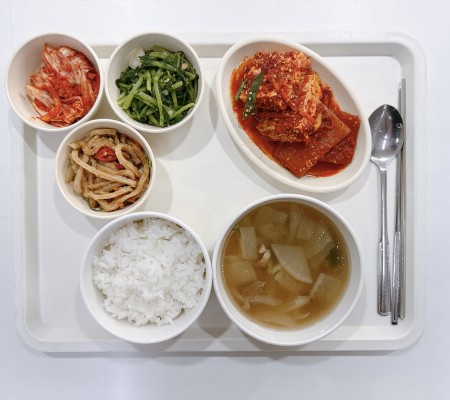 소고기무국 두부조림 어묵채볶음 열무쌈장무침 포기김치