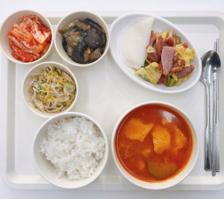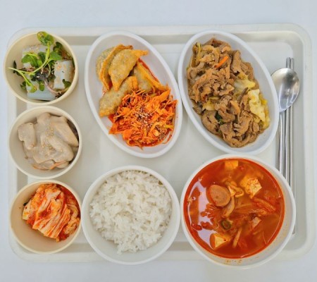 부대찌개 간장불고기 비빔만두 새송이들깨찜 청포묵무침 포기김치