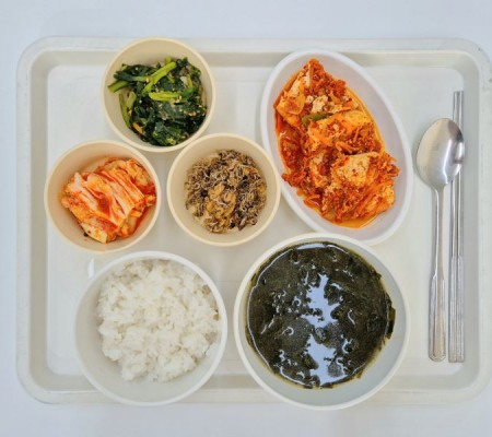 미역국 민찌두부조림 견과류잔멸치볶음 생취나물무침 포기김치