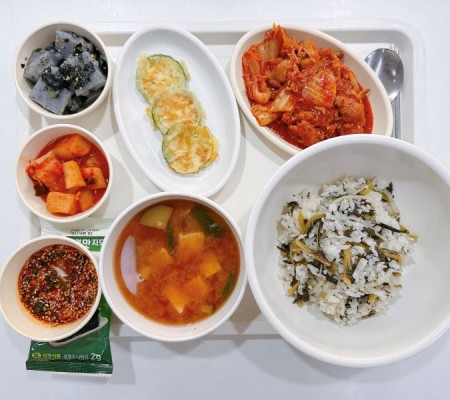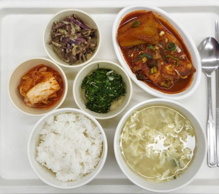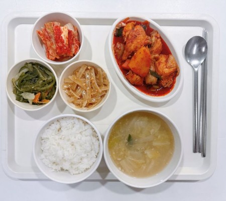 콩가루배춧국 닭볶음탕 미역줄기볶음 명엽채조림 포기김치