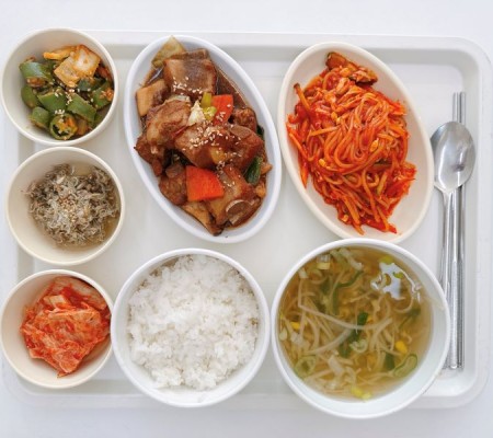 콩나물국 돼지갈비찜 쫄면 잔멸치볶음 고추쌈장무침 포기김치