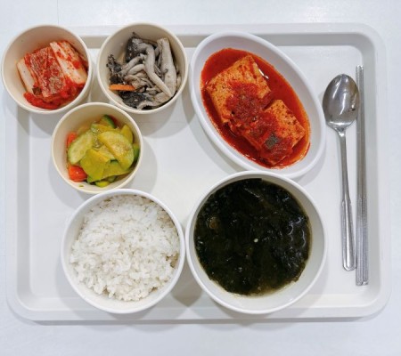 소고기미역국 두부조림 애호박볶음 느타리들깨무침 포기김치