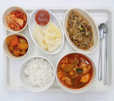 순두부찌개 간장불고기 양배추쌈*쌈장 감자조림 포기김치