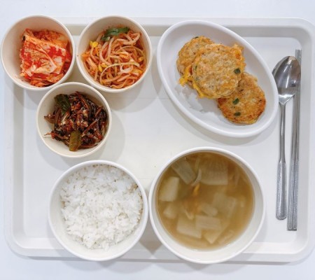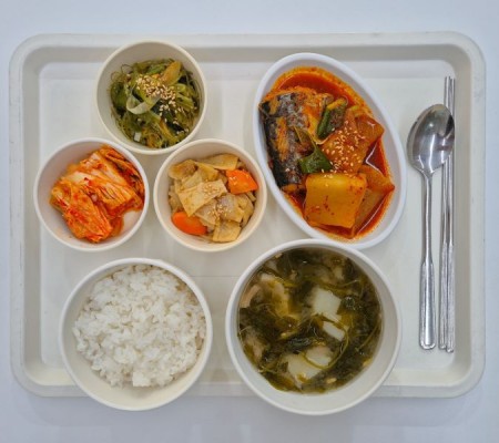 얼큰계란국 가자미구이 새송이짬뽕볶음 무나물 포기김치