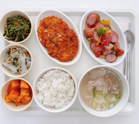 돼지국밥 김치전 쏘야볶음 청포묵무침 부추겉절이 깍두기