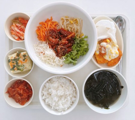 주꾸미비빔밥 미역국 새우까스 계란찜 오복지무침 포기김치