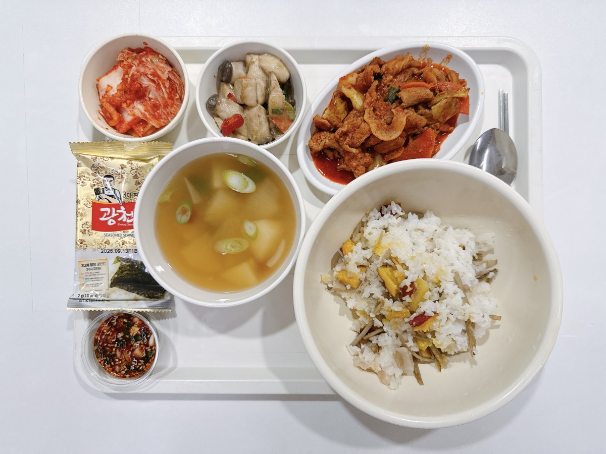 [12월 11일 - 석식] 더원식단 페이지 정보 작성자 더원한방병원 본문 뿌리채소밥 감자양파국 제육볶음 새송이들깨찜 도시락김 포기김치 목록 이전글[12월 12일 - 간식] 더원식단 25.12.12 다음글[12월 11일 - 중식] 더원식단 25.12.11