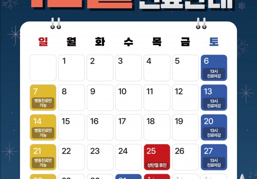 1월 27일(월), 1월 28일(화)은 오후 2시까지 진료합니다.