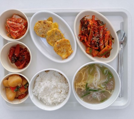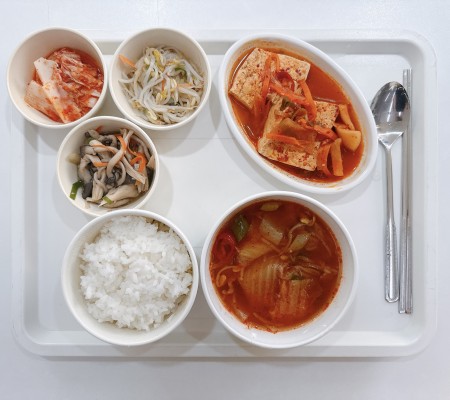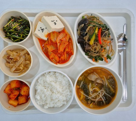 순두부찌개 너비아니 닭살냉채 건새우마늘쫑볶음 콩나물무침 포기김치
