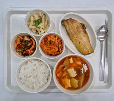 된장찌개 임연수구이 어묵볶음 도라지나물 봄동겉절이
