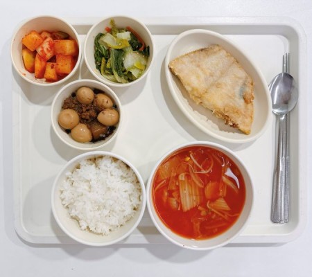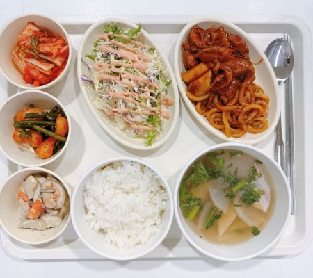 어묵국 바베큐닭조림 새송이볶음 양배추샐러드 락교무침 포기김치