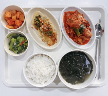 어묵국 일식카레 쫄면 감자고로케 얼갈이무침 포기김치