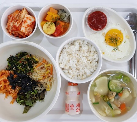 열무보리밥, 바지락수제비, 후라이*양념장, 열대과일샐러드, 요구르트, ..