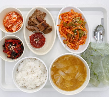 매운소고기국 삼치구이 어묵볶음 궁채들깨볶음 포기김치